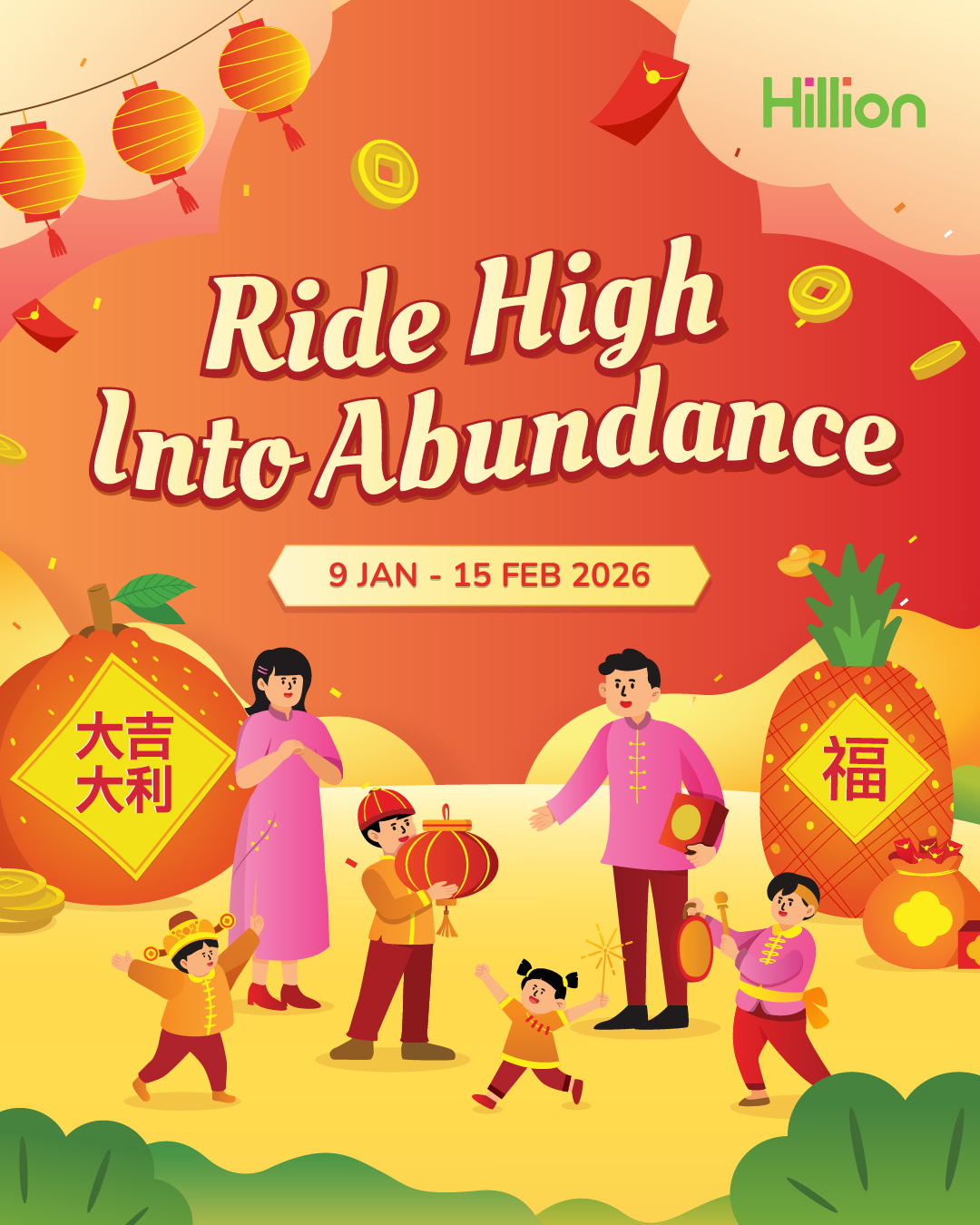 Usher in the Lunar New Year with joy and prosperity at Hillion Mall from 9 January to 15 February 2026! Immerse yourself in our curated festive activities and celebrate the season of reunion with your family and loved ones as we usher in a year of prosperity¸ happiness and good fortune.