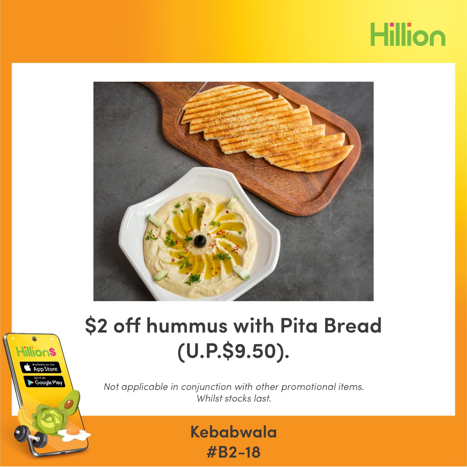$2 off hummus with Pita Bread (U.P. $9.50).
